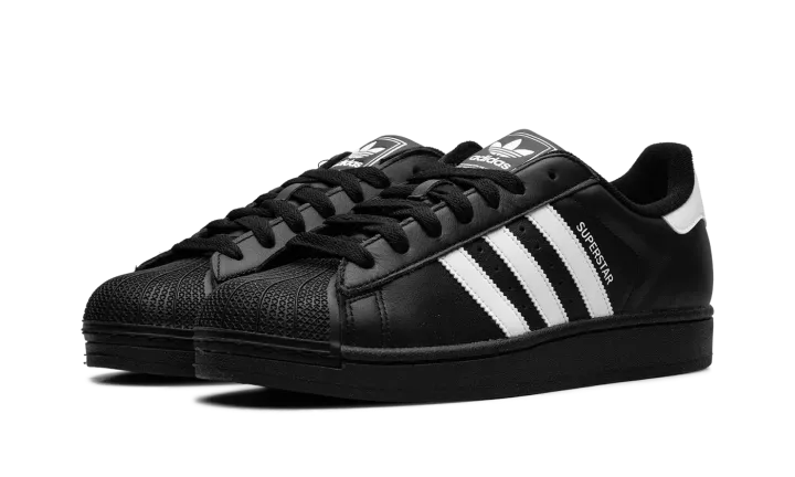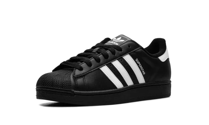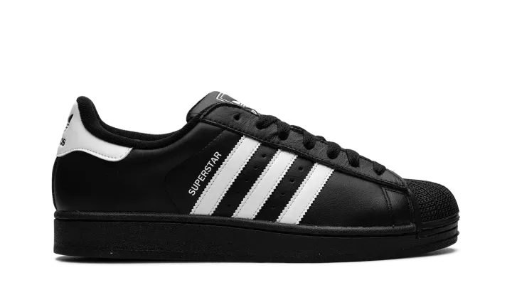 The Superstar 2 'Core Black Cloud White' shoe features a sleek core black upper with contrasting cloud white details, offering a classic and versatile look for everyday wear.