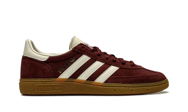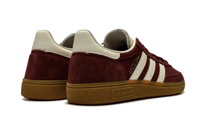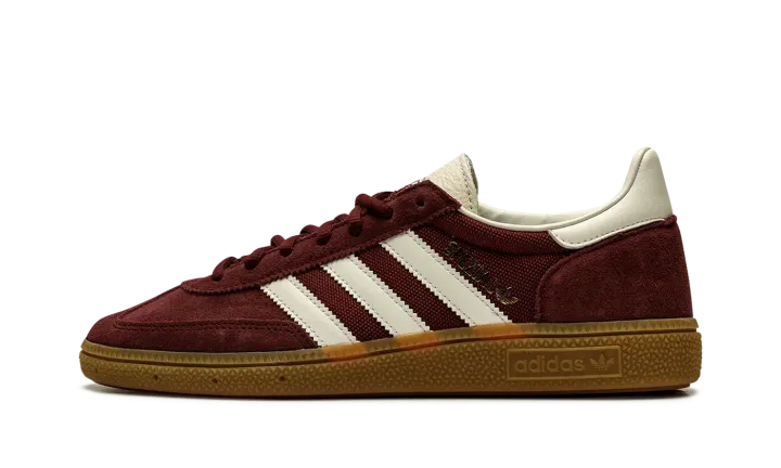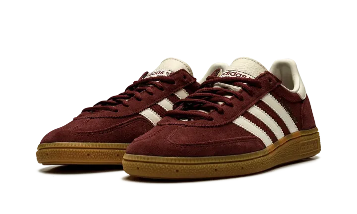 Take your style game back to the '70s with the ADIDAS Handball Spezial "Shadow Red/White/Chalk White" sneakers. Known simply as the "Spezial," this iconic, low-profile trainer started on the indoor courts and is now a street staple. The rich Shadow Red suede upper is perfectly contrasted by classic white serrated 3-Stripes and a durable gum rubber outsole. This retro T-toe classic brings a timeless, energetic, and comfortable feel to your everyday hustle.