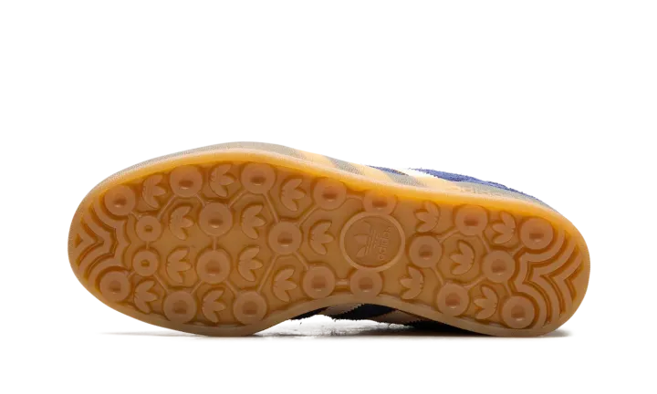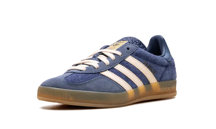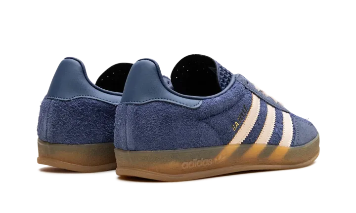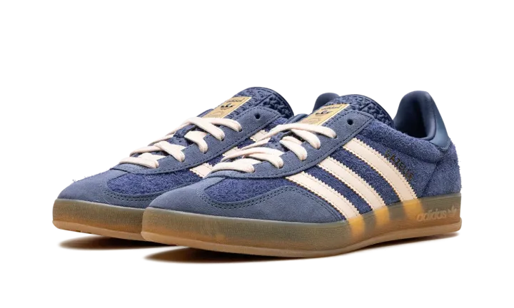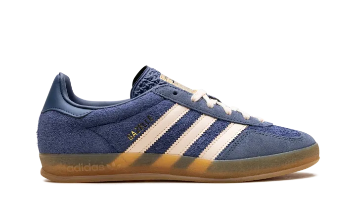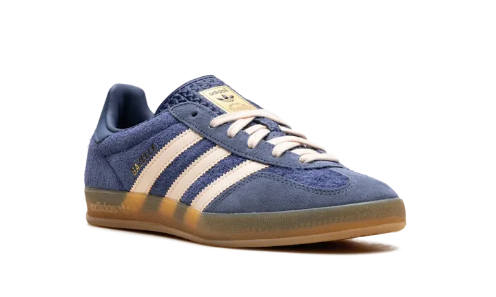 Step back into classic style with the adidas Gazelle Indoor "Dark Blue Suede." A faithful recreation of the 1979 indoor model, this shoe features a luxurious Dark Blue suede upper contrasted by sharp white or light-colored serrated Three-Stripes and heel tab. The most defining feature is the translucent gum rubber cupsole, which has a distinctive pattern and gives the sneaker its original vintage indoor look and feel. Gold foil "Gazelle" branding on the side and the Trefoil logo on the tongue complete this timeless, retro silhouette.