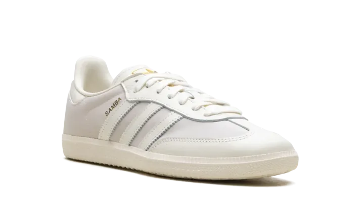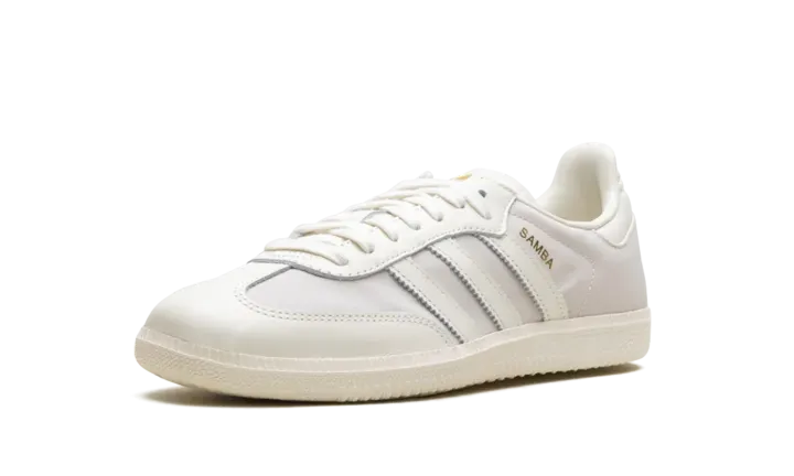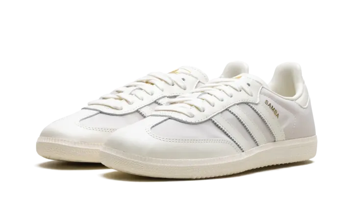 Inject effortless vintage style into your everyday look with the adidas Samba OG "Off-White / Alumina." This edition of the iconic sneaker updates the classic indoor soccer silhouette for a summery, street-ready feel. It features a lightweight nylon upper in Off-White, accented by color-blocked overlays and a contrasting heel tab in the neutral Alumina tone. The signature serrated 3-Stripes and gold-letter branding add a touch of authentic heritage, all grounded by a low-profile rubber outsole.