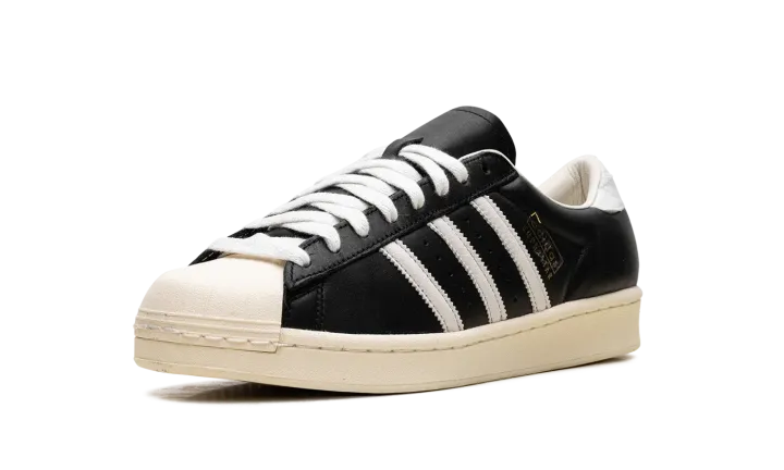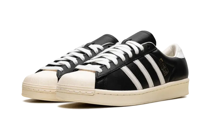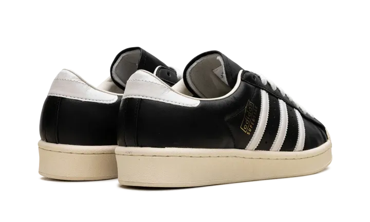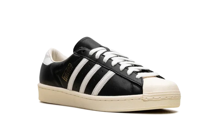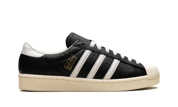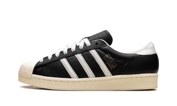 The Superstar Vintage 'Black / White / Antique' shoe features a classic design with a vintage aesthetic, offering a timeless addition to any sneaker collection.