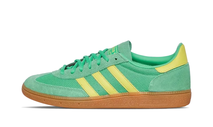 Ready to inject some vibrant color into your rotation? Meet the ADIDAS Handball Spezial "Energy Green/Pure Sulfur" sneaker! Nicknamed "Energy Green," this low-profile T-toe classic revives the look of 1970s indoor sports shoes with a modern, eye-catching colorway. The supple leather and textile upper is durable yet comfortable, and the dependable gum rubber sole provides traction and retro charm. These vintage kicks offer all-day comfort and a laid-back vibe that makes a bold street-style statement.