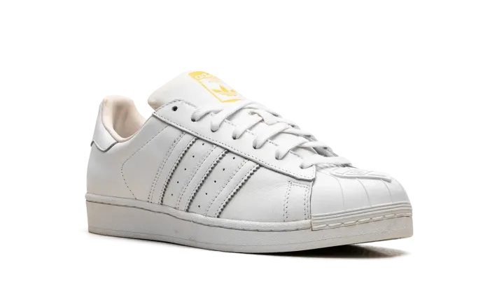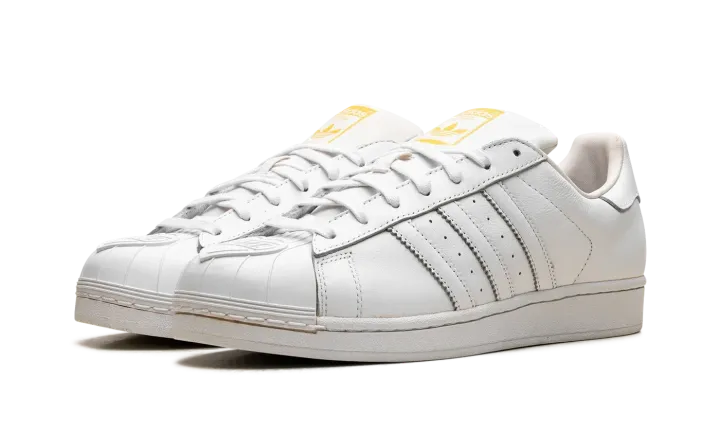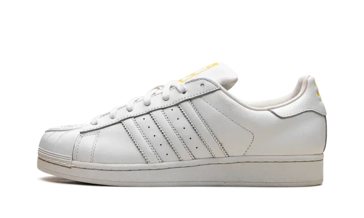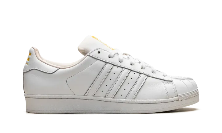 The Superstar Supershell 'Pharrell - Space Time' shoe blends classic Adidas Superstar style with a unique design by Pharrell Williams, featuring a distinctive "Space Time" aesthetic.