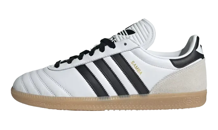 Own a piece of history with a fresh twist in the adidas Samba JP "Cloud White/Black/Gum". This Japan-exclusive take on the iconic indoor soccer shoe reloads its legacy with bold, refined details. It features a crisp Cloud White leather upper with an updated quilted vamp for texture, an extended tongue for retro flair, and classic Black serrated Three-Stripes. A gum rubber outsole keeps the low-profile look grounded and street-ready. It's a clean, elevated edition of a forever-classic.