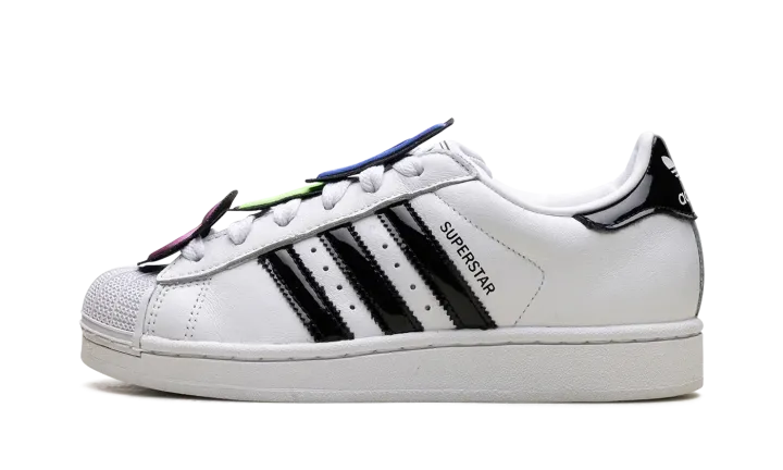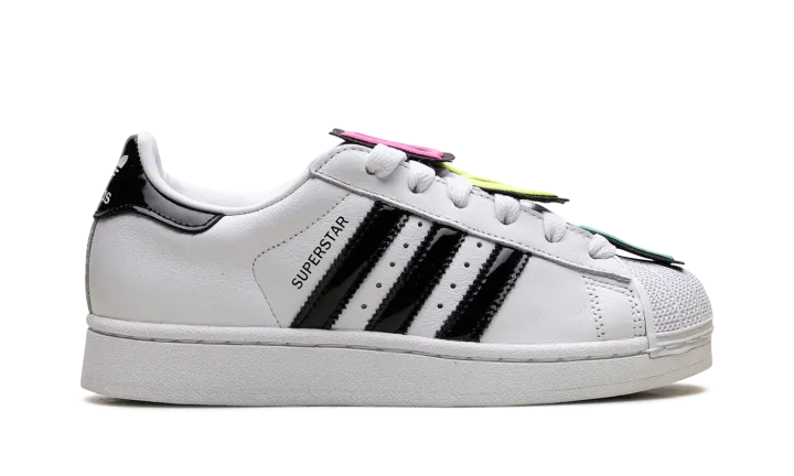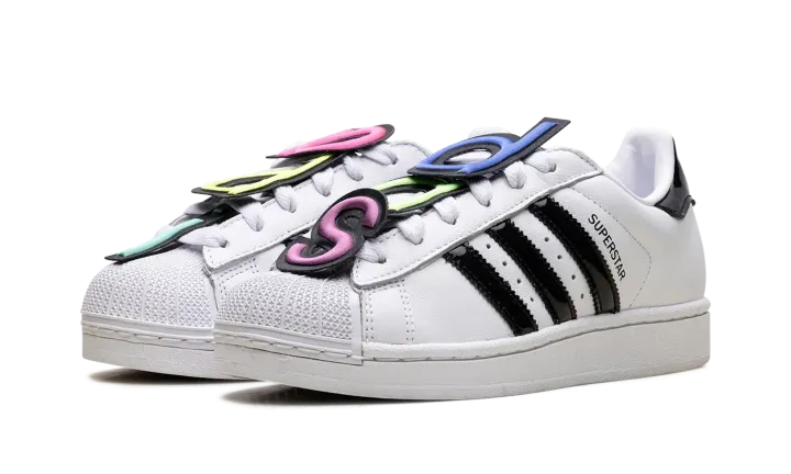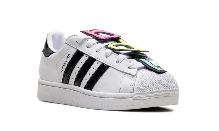 The Superstar II 'Jeremy Scott - White' shoe features a unique design by Jeremy Scott, blending classic Adidas Superstar II style with his iconic bold aesthetic in a clean white colorway.