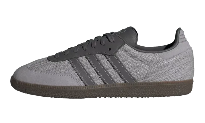 Born on the pitch and built for the street, the ADIDAS Samba OG "Glory Grey/Charcoal" sneaker is a timeless icon. This edition, simply called "Glory Grey," evolves the classic silhouette with a sleek knit textile upper and a soft suede T-toe for enhanced comfort and texture. Featuring the iconic serrated 3-Stripes and signature gum rubber outsole, this shoe embodies over 70 years of athletic heritage while remaining a clean, modern staple for today's casual style.