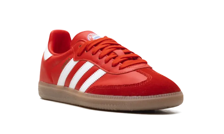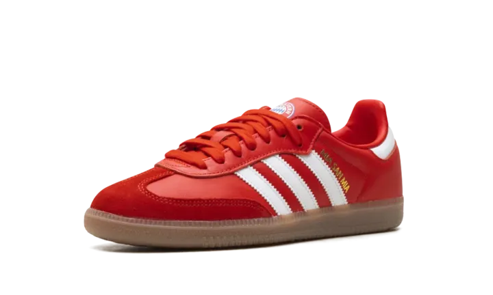 Step into a world where football heritage meets style with the Samba "FC Bayern". This celebrated collaboration features the club's vibrant red and white colors on a premium leather upper. The shoe includes subtle club branding and a classic gum sole, delivering a comfortable fit and a versatile look that's perfect for making a powerful statement of fan pride.