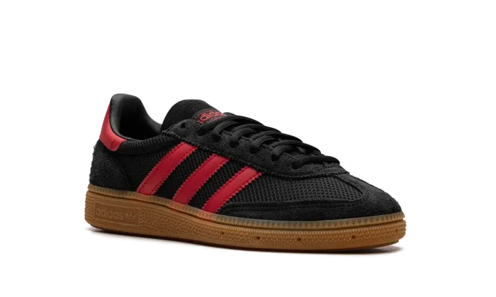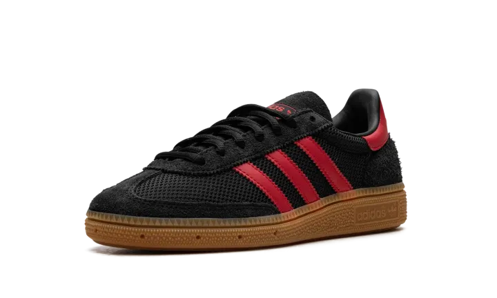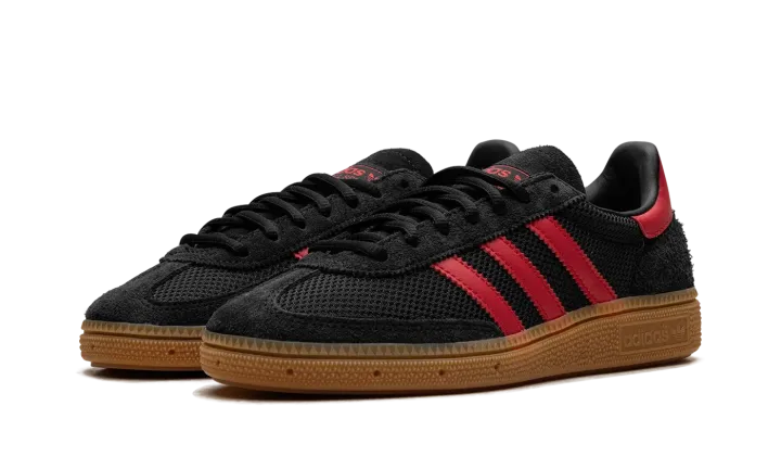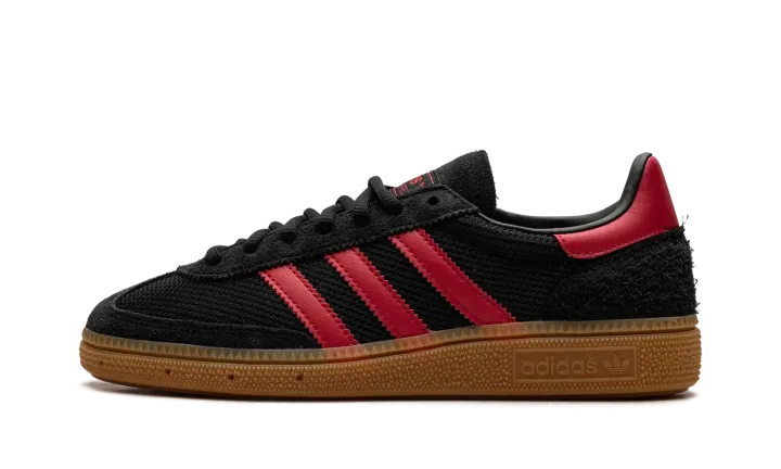 Step into timeless athletic style with the ADIDAS Handball Spezial 'Core Black Better Scarlet Gum'. This classic silhouette features a rich black suede upper accented by striking Better Scarlet three-stripes and heel tab, all grounded by a vintage gum rubber outsole. Originally built for the handball court, the 'Core Black Better Scarlet Gum' now serves as an essential street staple, offering supreme comfort and an iconic, low-profile look that pairs perfectly with any outfit.