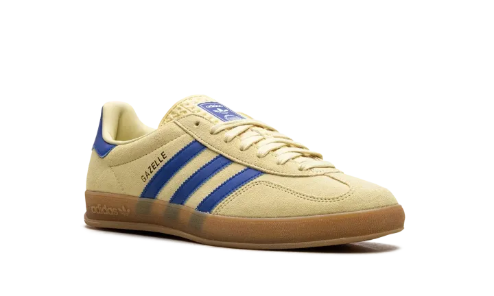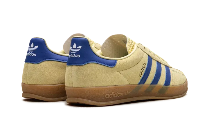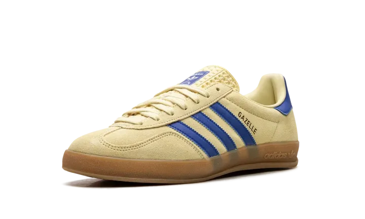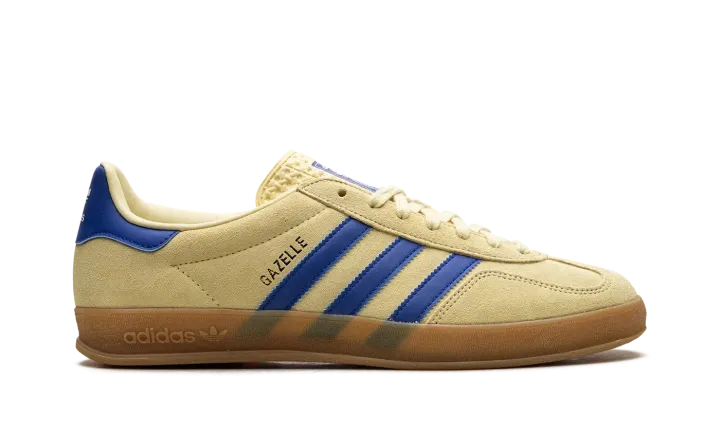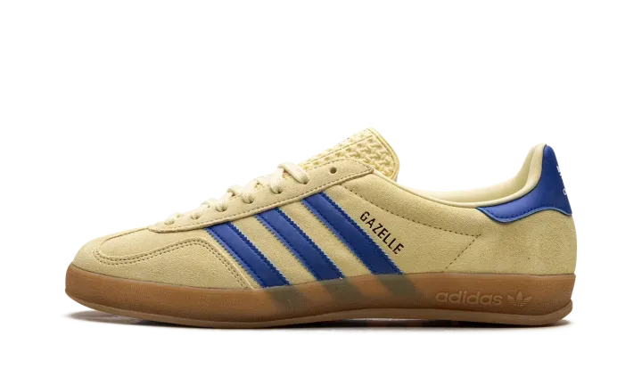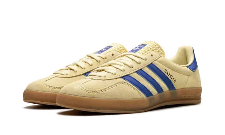 Inject a burst of color into your rotation with the Adidas Gazelle Indoor "Powder Yellow / Royal Blu." This eye-catching sneaker features a vibrant Powder Yellow suede upper, sharply contrasted by Royal Blue leather accents on the Three Stripes and heel tab. A classic transparent gum sole completes the look, perfectly capturing the retro indoor soccer aesthetic while delivering modern style.