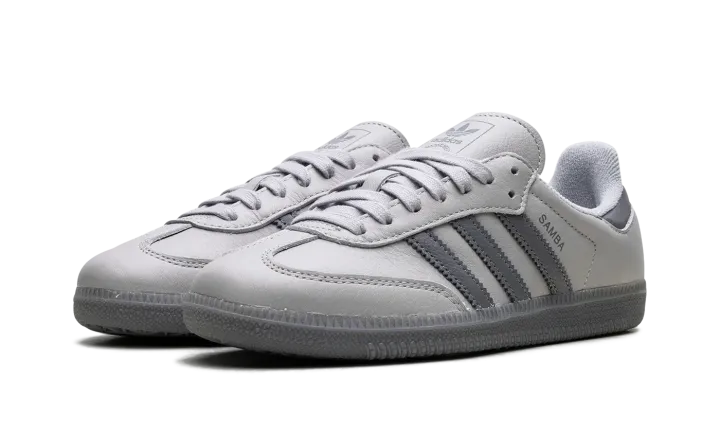 Step into a clean and classic look with the Adidas Samba OG "Grey". This celebrated silhouette features a soft grey suede upper complemented by subtle white accents and a timeless gum sole. Enjoy the comfortable fit and versatile appeal, blending a retro aesthetic with modern style for a sophisticated look that's perfect for any occasion.