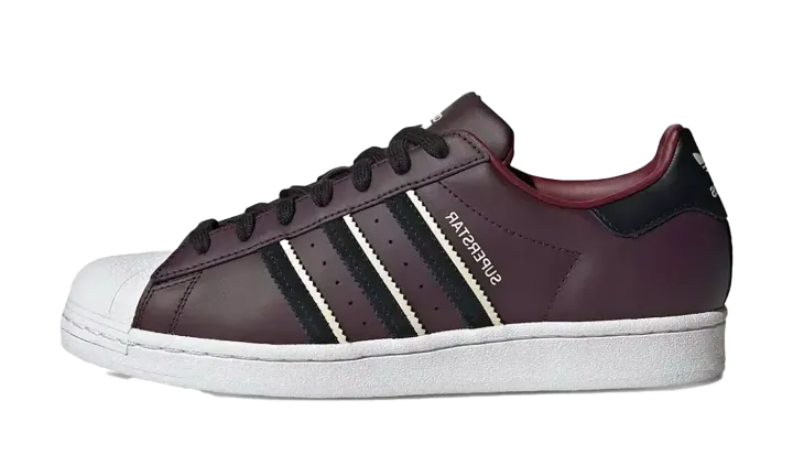 The Superstar 'Red' shoe features a classic design in a vibrant red colorway, offering a bold and timeless addition to any sneaker collection.