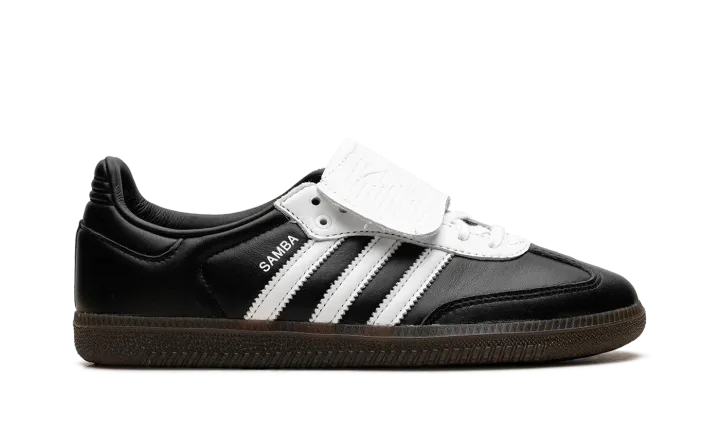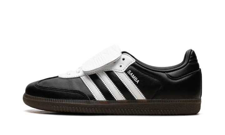 Experience the evolution of a legend with the adidas Samba LT "Core Black Cloud White" sneaker. This stylish update to the iconic Samba silhouette is a head-turner, featuring the classic full-grain black leather upper, serrated white 3-Stripes, and a suede T-toe. The most notable detail is the oversized, fold-over tongue, a bold nod to its football boot heritage that brings a sporty, fashion-forward edge. Finished with the signature gum rubber outsole for excellent grip, this sneaker is a timeless staple for any rotation.