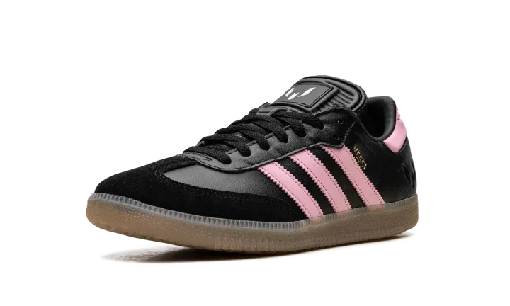 Infuse your rotation with a touch of greatness with the Samba Messi Indoor "Core Black / Gold Metallic / Gum". This phenomenal shoe offers a powerful blend of classic design and bold appeal, highlighted by its striking gold and black accents. It's a comfortable and stylish option for any fan who wants to wear a fresh, standout look with a unique narrative.