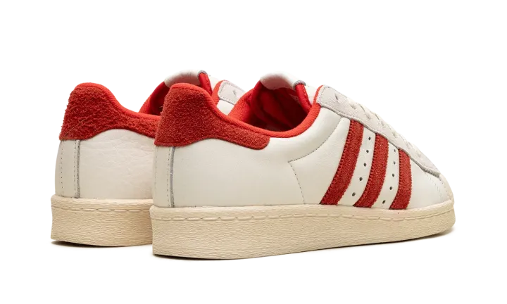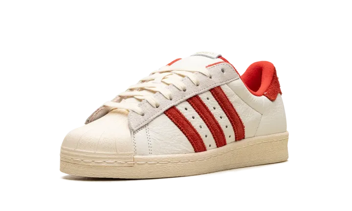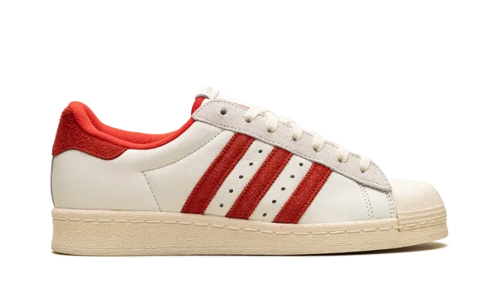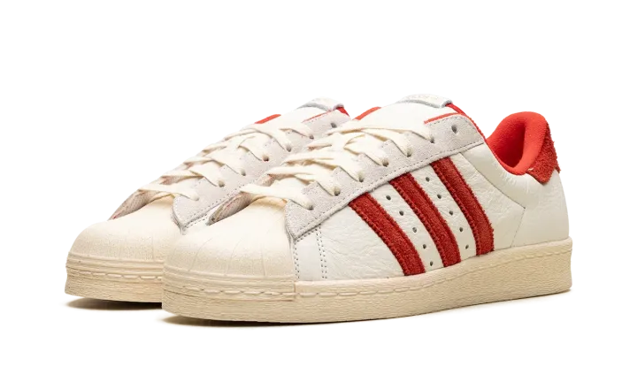 The Superstar 82 'White' shoe features a classic design with a clean white aesthetic, offering a versatile and timeless addition to any sneaker collection.