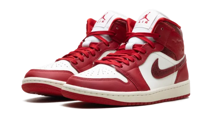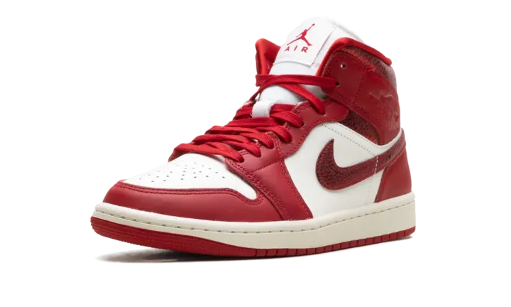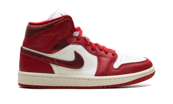 Step into a striking, vibrant look with the Air Jordan 1 Mid Wmns "Red Cracked Leather". This celebrated women's sneaker features a bold red upper with a unique cracked leather finish, giving it an aged aesthetic. Enjoy superior Air cushioning and a versatile style, perfect for making a stylish statement with a subtle, distressed edge.