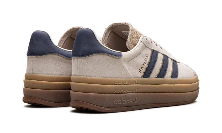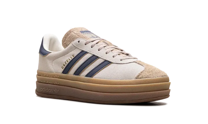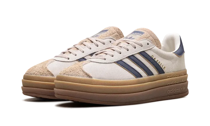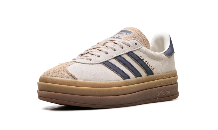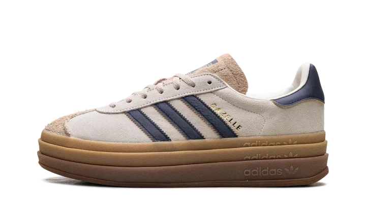 Elevate your stride with the Adidas Gazelle Bold WMNS sneaker, affectionately dubbed "Cream Night Indigo." This women's exclusive takes the iconic low-profile Gazelle silhouette and gives it a confident lift with a dramatic triple-stacked platform outsole. The creamy suede upper provides a soft, premium feel, beautifully contrasted by the dark "Night Indigo" leather Three Stripes and heel tab. This shoe is a must-have for the fashion-forward, blending '90s nostalgia with a modern, statement-making design.