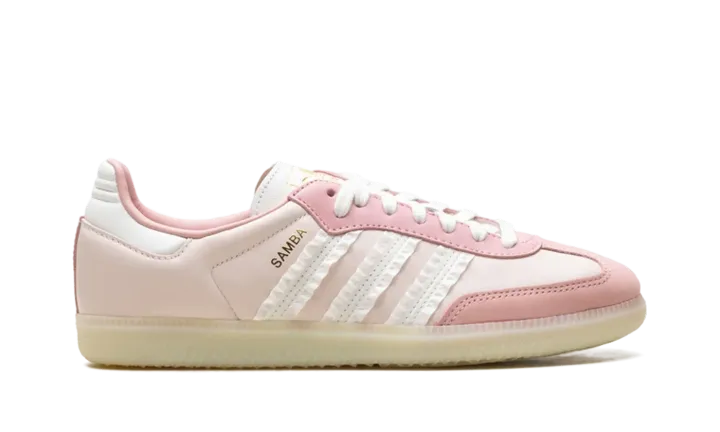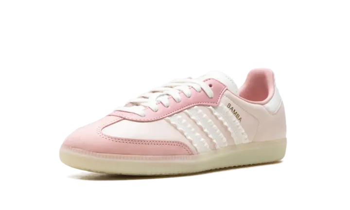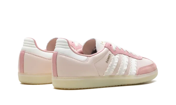 Step into a unique take on a classic with the Adidas Samba Wmns "Ruffle Stripes Wonder Mauve". This celebrated women's sneaker re-imagines the silhouette with soft suede and a delicate ruffle design replacing the traditional stripes. The gentle Wonder Mauve color delivers a comfortable fit and a versatile look that's perfect for making a sophisticated, feminine statement every day.