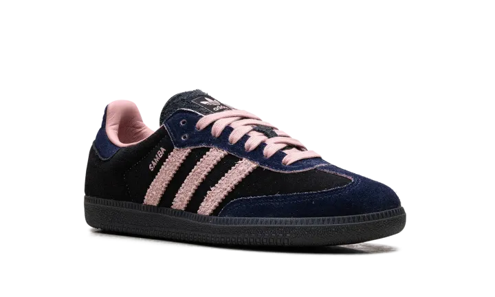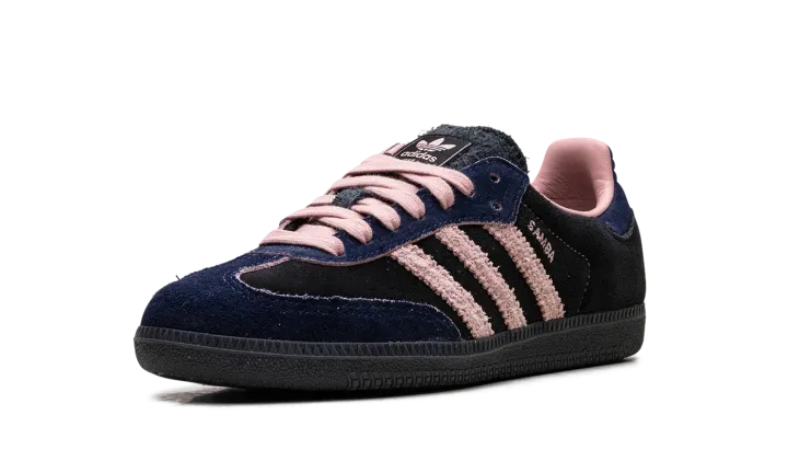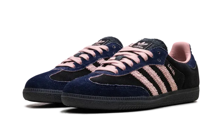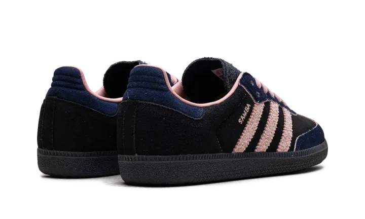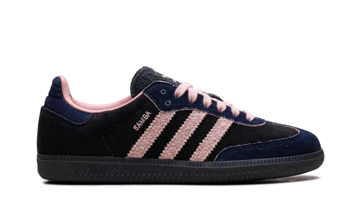 Step into a rich, sophisticated aesthetic with the Adidas Samba OG Wmns "Black / Wonder Mauve / Indigo". This celebrated women's sneaker features a black suede upper complemented by sleek Indigo Three Stripes and Wonder Mauve accents. Enjoy superior cushioning and a design that's perfect for making a stylish statement with a subtle pop of color.