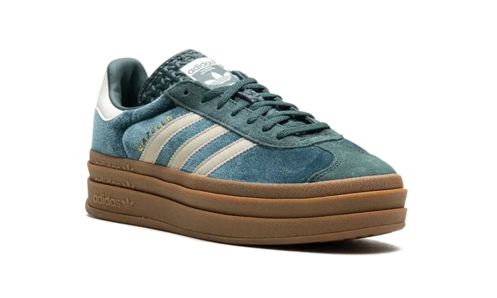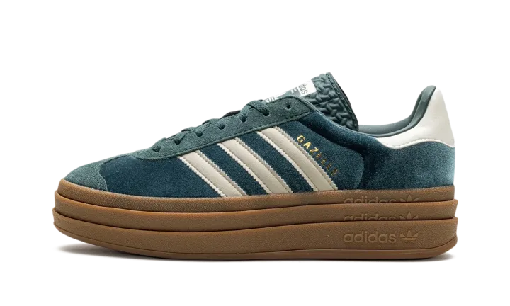Step into a world of luxe texture with the Adidas Gazelle Bold Wmns "Mineral Green Velvet". This celebrated women's sneaker features a soft green velvet upper and a striking platform sole for elevated style. The luxurious material and bold design deliver a comfortable fit and a fresh look that's perfect for making a sophisticated statement every day.