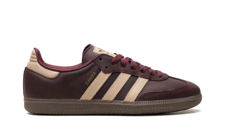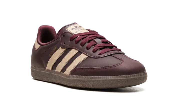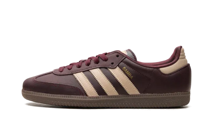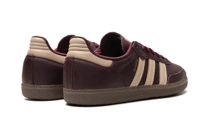 The Adidas Samba OG WMNS "Maroon Crystal" is a stylish and sophisticated reimagining of the iconic Samba silhouette.The deep maroon leather base brings a warm, earthy tone to the sneaker and the crystal accents on the heel and tongue give the Samba a luxe touch making it a versatile option.
