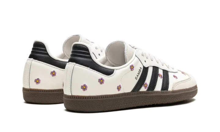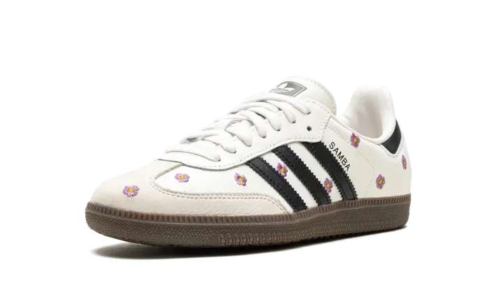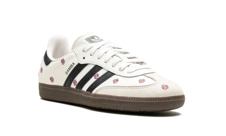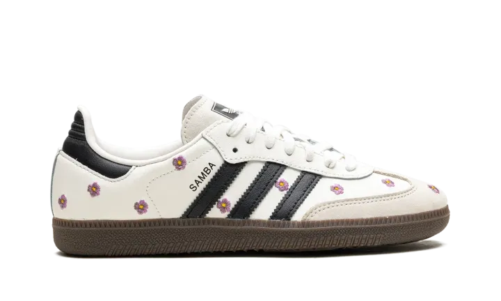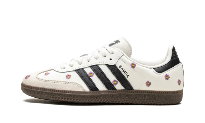 The Adidas Samba OG "Purple Floral" reimagines a classic with a burst of color and pattern. This design features a vibrant purple upper adorned with a floral motif, offering a unique and eye-catching take on the Samba silhouette. The iconic details are complemented by the playful design.