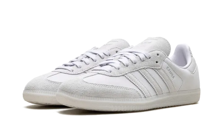 The Adidas Samba WMNS "Dash Grey" offers a sophisticated, monochromatic spin on the classic indoor soccer silhouette. Designed for women, this version features a soft, textured "Dash Grey" upper—likely premium leather or suede—for a subtle and versatile look. The shoe maintains the Samba's low-profile construction with the signature suede T-toe overlay, white branding on the Three Stripes and heel tab for contrast, and is finished with the traditional gum rubber outsole. This colorway is an effortless addition to any elevated casual outfit.