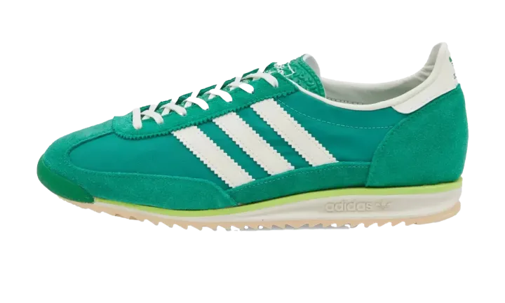 Step into a piece of running heritage with the Adidas SL 72 OG Wmns "Court Green". This celebrated women's sneaker features a soft nylon and suede upper in a vibrant Court Green hue. Its low-profile silhouette delivers a lightweight, comfortable fit and a versatile look that's perfect for making a sophisticated statement every day.