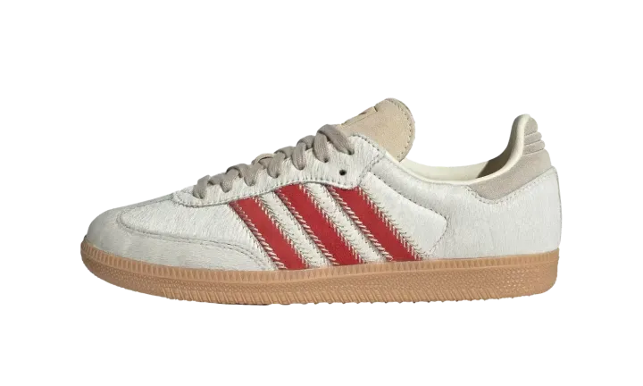 Elevate your style with the stunning ADIDAS Samba OG WMNS "Wonder Beige Cream White," known as the "Wonder Beige Cream White." This women's exclusive features the beloved low-profile Samba silhouette in a chic, neutral colorway. The premium leather and suede upper blend sophisticated beige and cream white tones, ensuring versatility for any outfit. Finished with the signature gum rubber outsole for classic appeal and traction, this Samba iteration is the perfect blend of heritage design and modern, effortless elegance.