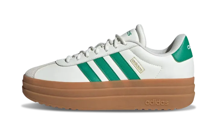 Step up your sneaker game with the adidas VL Court Bold, our striking "Platform Classic" that perfectly blends iconic court style with bold elevation. The smooth synthetic upper in crisp Core White is instantly elevated by vibrant Court Green and Gold Metallic accents, delivering instant street credibility. Featuring a comfortable textile lining and EVA sockliner, this shoe ensures all-day comfort. The durable rubber platform outsole lifts your look, making this design effortlessly versatile for any casual adventure. Feel confident and excited about your new go-to shoe!