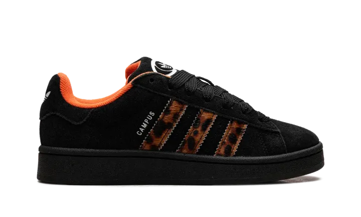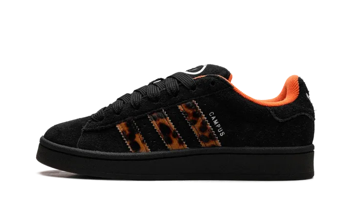 Bring bold, retro energy to your rotation with the adidas Campus 00s Wmns "Leopard Stripes," a chunky update inspired by 2000s skate style. The black suede upper offers a clean base, allowing the fuzzy pony-hair 3-Stripes in a dynamic leopard print to truly pop. This stylish take on the classic Campus silhouette features a padded tongue and collar for comfort, and a durable black rubber sole for reliable traction, blending fierce fashion with a vintage athletic feel.