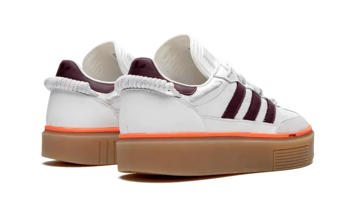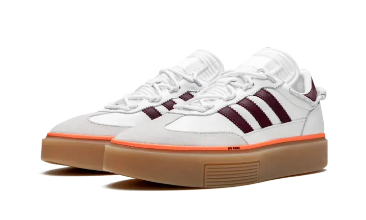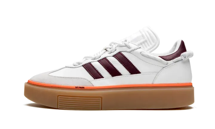 The Ivy Park x adidas Super Sleek 72 is a platform sneaker included within Beyonce's highly sought-after Ivy Park collection that was released in January 2020. The look draws favorably from adidas's archives and features similar styling to the classic Samba indoor soccer shoe. The Super Sleek's upper is comprised of a white leather base and features contrasting maroon Three Stripes branding on the mid-panel and thin orange piping along the midsole that spans the entire upper. Light grey suede overlays on the toe and a boat shoe-like lacing system along the collar provide additional detailing. A tall gum rubber midsole adds height to the cleanly appointed shoe. The Ivy Park x adidas Super Sleek 72 by Beyonce was released on January 18th, 2019.