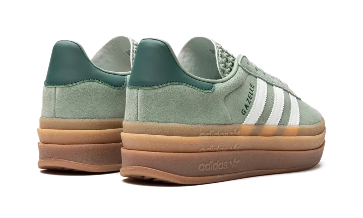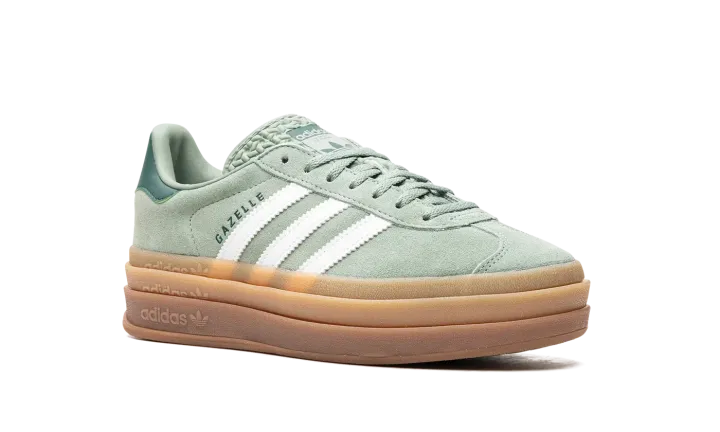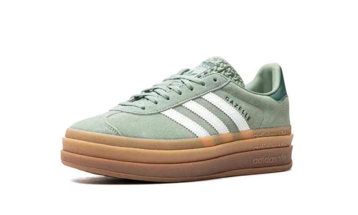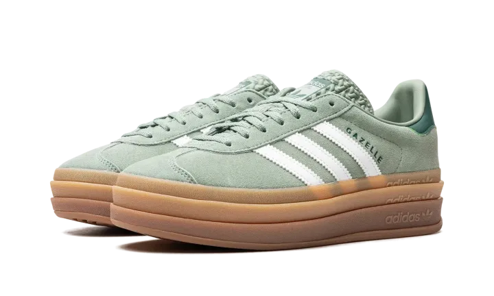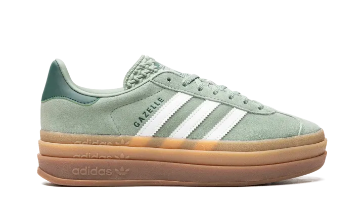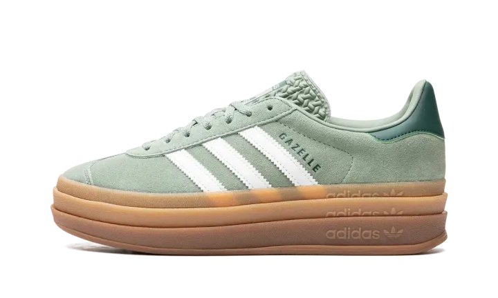 The Women's adidas Gazelle Bold "Silver Green/Gum" is a women's-exclusive colorway of the modified version of the retro sneaker with a stacked, platform-style sole. A contemporary spin on the adidas Gazelle, the model's Bold edition turns heads with a raised sole that provides significant height to the wearer. As for the rest of the design, the shoe has a Silver Green-colored suede upper with white leather Three Stripes on the sides. Debossed "Gazelle" branding is found on the lateral side of the shoe. A green "adidas Gazelle" logo lands on the tongue. The exaggerated platform sole is designed in a gum rubber hue. Release date: October 1, 2023