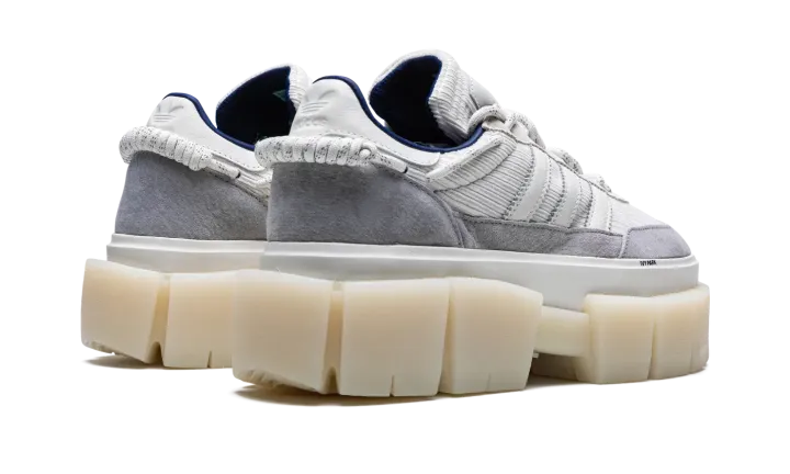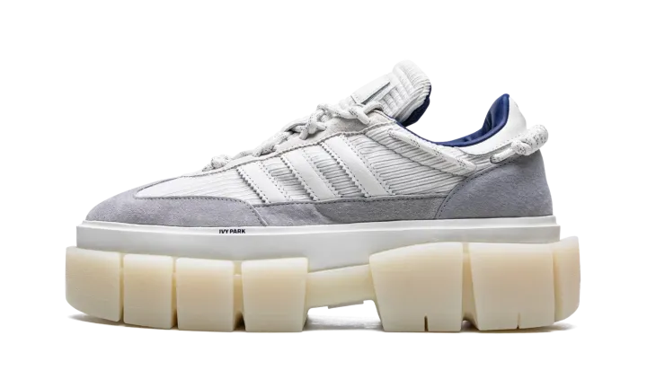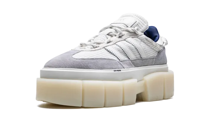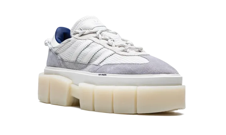 The Ivy Park x adidas Super Sleek Chunky "Halls of Ivy" is a collaboration between Beyonce's activewear line and adidas that updates the lifestyle shoe with a raised platform sole and other special details. From December 2021, the "Halls of Ivy" represents the fifth collaboration between Beyonce and adidas. In spite of its exaggerated sole, the "Halls of Ivy" features a low-key look, with an off-white-colored corduroy upper matched with tonal leather Three Stripes branding. A boat-shoe-like lacing system gives the retro inspired low-top a unique appearance. An exaggerated, semi-translucent gum rubber midsole gives the Super Sleek Chunky a platform style design. Release date: December 9, 2021