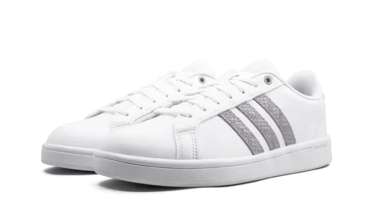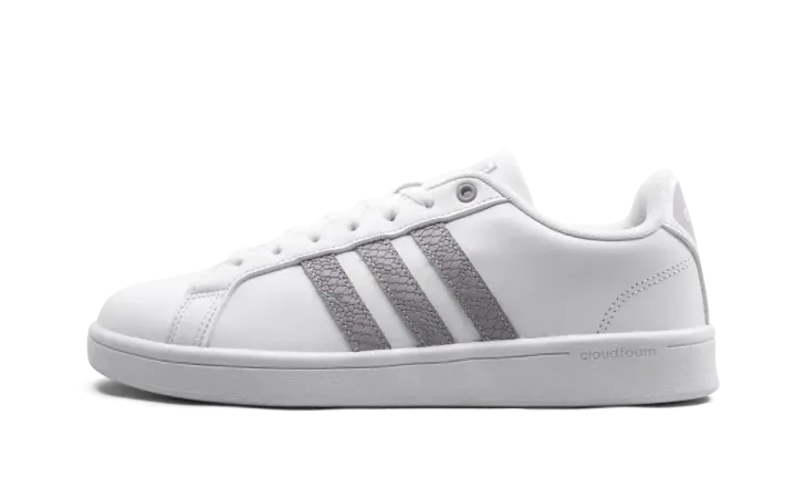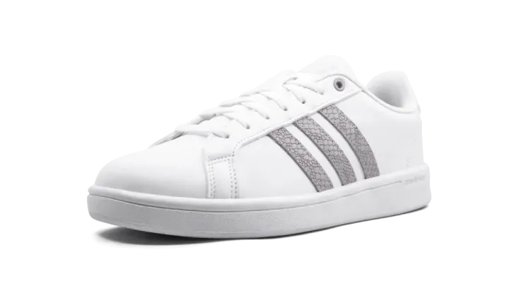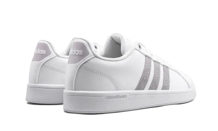 The adidas CF Advantage is yet another classic archival design that feels every bit as fresh and exciting today as it did when it debuted in the '70s. Crisp white leather covers the upper with white stitching on the heel and forefoot providing a subtle contrasting. Reptilian-like Three Stripes branding is located on the mid-panel of the shoe while a lavender leather heel cap contrasts the back of the shoe. The tennis-inspired look is finished off with a cloudfoam midsole that provides a cushioned ride.