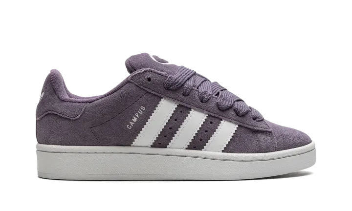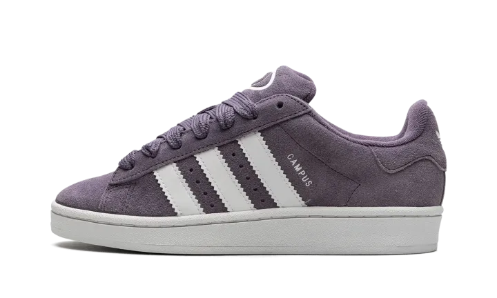 The Women's adidas Campus 00s "Shadow Violet" is a women's-exclusive colorway of the sneaker with a retro skate shoe appearance. Inspired by Y2K-era skateboarding sneaker aesthetics, the adidas Campus 00s is a timeless shoe that can be worn by anyone. The "Shadow Violet" colorway gives the model a light purple suede appearance with oversized white leather Three Stripes branding on the sides. "Campus" branding is seen on the lateral side of the mid-panel next to the classic adidas logo detailing. The brand's signature Trefoil logo appears on the heel and on the tongue in white. The shoe's off-white midsole is mounted on a rubber outsole with a herringbone pattern that provides ample grip. Release date: August 14, 2023