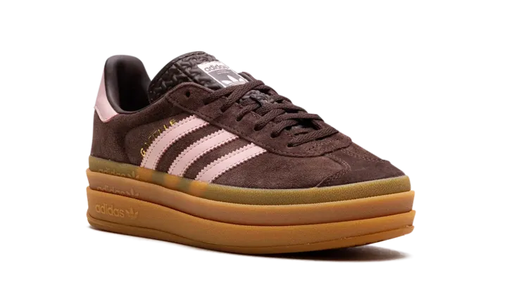Silhouettes are soaring with the Adidas Gazelle Bold WMNS "Icey Pink Auburn", a platform rework of the iconic '90s trainer. This women's exclusive model features a plush suede upper in "Icey Pink," perfectly contrasted by the bold "Auburn" leather Three Stripes and heel tab. The signature stacked, three-tier gum rubber outsole gives you a trendy lift, instantly elevating any casual outfit. Step up your style with this confident and eye-catching take on a true classic.