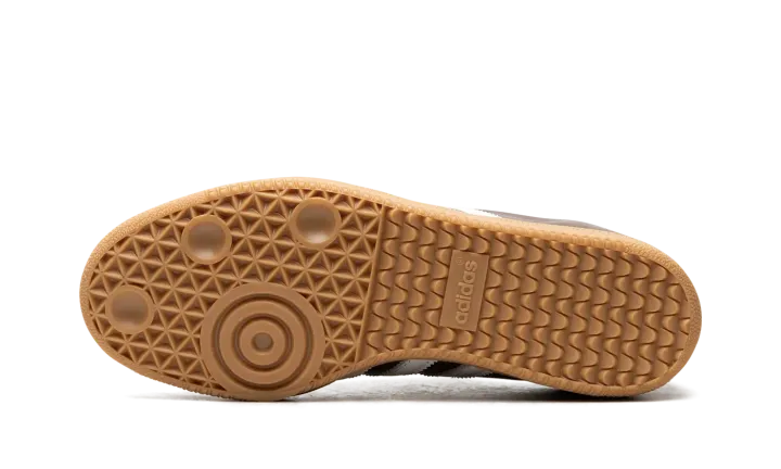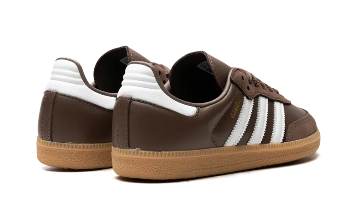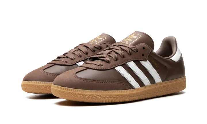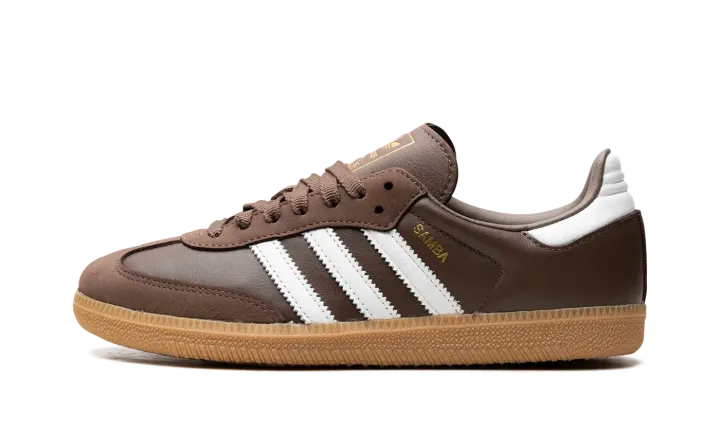The adidas Samba OG Earth Strata Gum (W) elevates a classic with a rich, earthy palette. Smooth calf leather meets suede overlays, blending luxury with iconic design. Earth Strata dominates, coloring laces, tongue, and insole for a cohesive look. Footwear White serrated stripes and heel tab provide sharp contrast, while gold metallic accents add elegance. A gum rubber outsole ensures grip and heritage appeal. This sneaker, inspired by indoor soccer, delivers comfort and durability with a sleek, retro aesthetic. Ideal for those seeking standout style and timeless functionality.