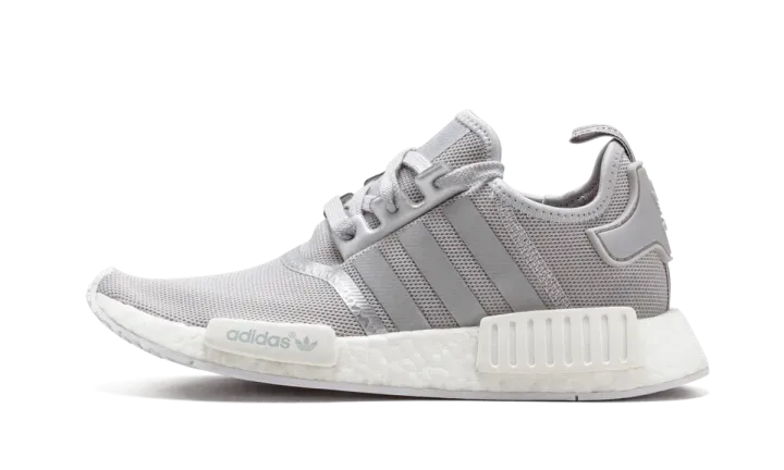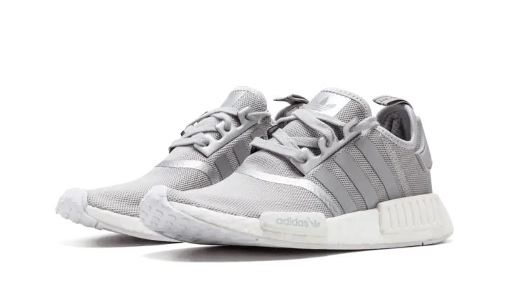 This flashy look for the women's adidas NMD features a grey mesh upper with metallic silver accents.
