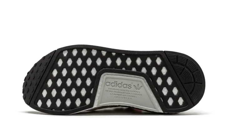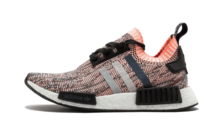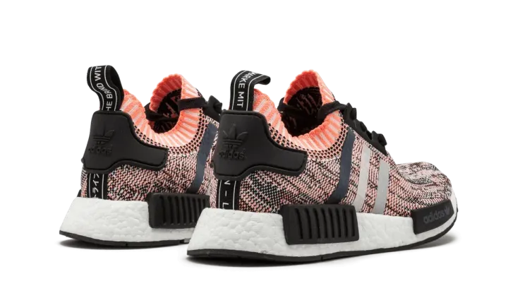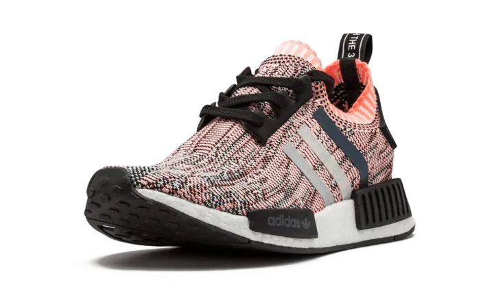 It's a party whenever a new adidas NMD R1 Primeknit releases. This version features glitch camo on the upper in a "Salmon" colorway and a unique Three Stripes arrangement of black, off-white, and grey.