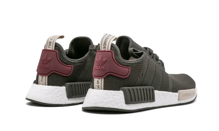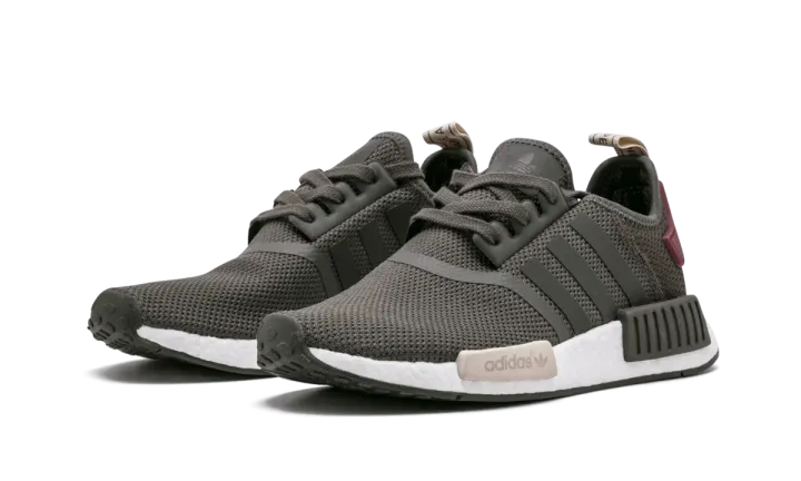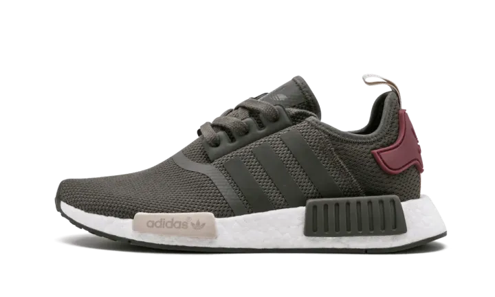 adidas put a fresh look on this women's edition of the on-the-go NMD runner. The new upper design is split, with tight-knit vamp and toe and a looser knit around the heel. The olive upper is set off by tan accents at the heel pull-tab and midsole stabilizer. A red heel counter caps the look with a pop of color.