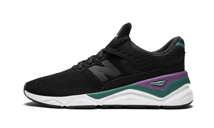 The New Balance X-90 women's sneaker captures the fashion spirit of the 1990s and reworks it to match today's style. The X-90 has a classic black breathable mesh upper and rubber outsole and clean white midsole. Color arrives in the form of subtle green and purple accents that pair well with anything. Fitting perfectly into the chunky sneaker trend, the New Balance X-90 women's sneaker offers limitless styling opportunities.