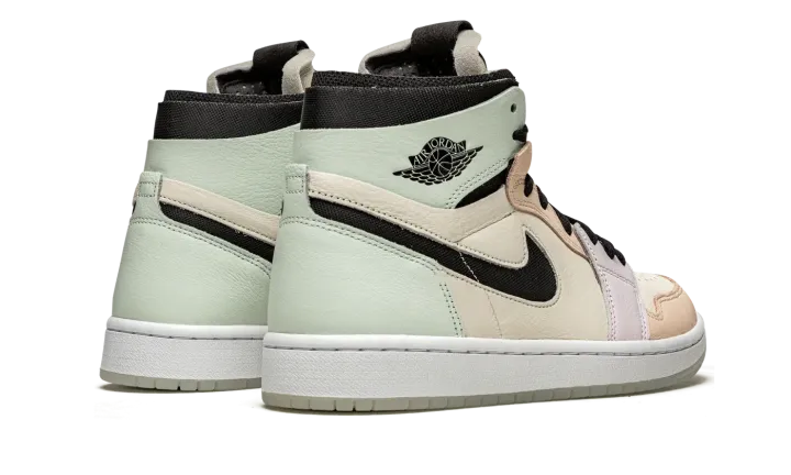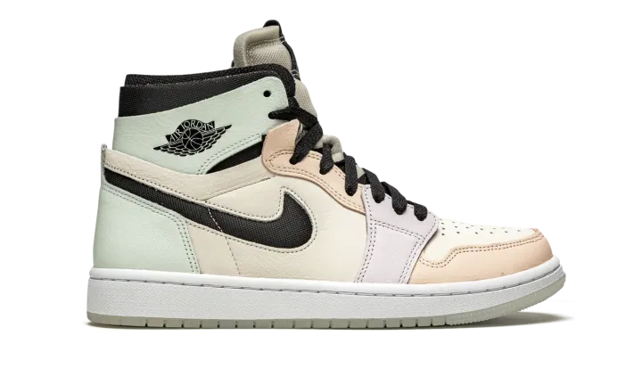 The Women's Air Jordan 1 High Zoom CMFT "Easter" is a women's version of the modern remake of Michael Jordan's first signature shoe in a colorway inspired by the springtime holiday. Arriving in pastel colored panels, the "Easter" Jordan 1 Zoom CMFT was released by Jordan Brand in Spring 2021 in the soft and airy hues commonly associated with Easter. The updated Zoom CMFT edition of the Jordan 1 features even more padding around the collar than the standard Jordan 1 model and Nike's Zoom Air technology in the sole. As for this design, cream leather appears on the perforated toe and mid-panel. The eyelets and toe cap are dressed in tan tumbled leather. Both the collar and heel feature a light mint green leather construction. A black mesh Swoosh can be found on either side and a black "Wings" logo resides on the collar. Exposed foam padding peers out from the front of the collar. The brown mesh tongue features a "Zoom Air" branded tongue tag. Zoom Air technology is embedded within the sole for all-day comfort. Release date: Spring 2021.