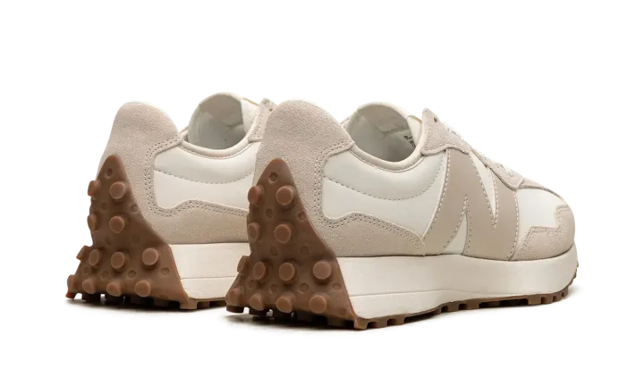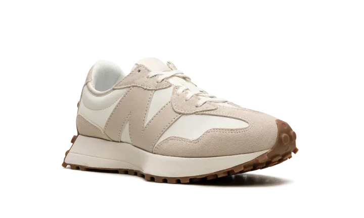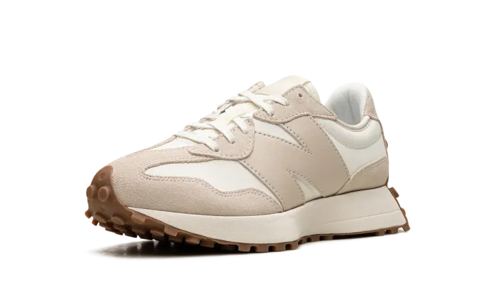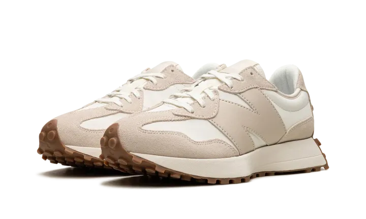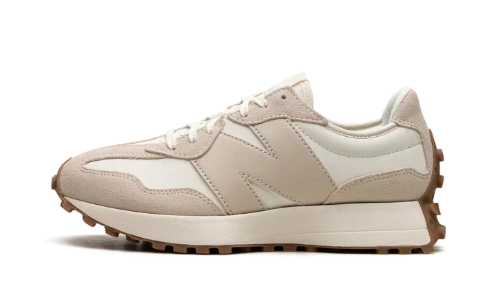 The Women's New Balance 327 "Moonbeam/Timberwolf" is a women's-exclusive colorway of the retro-modern shoe with an easy-to-style design. The upper is complete with a white leather base contrasted with beige suede overlays. An oversized beige leather "N" logo can be found on either side of the shoe. Classic "NB" branding is located on the tongue tag. Underfoot, a cream-colored midsole and a gum-colored ridged rubber outsole complete the design. Release date: January 25, 2023