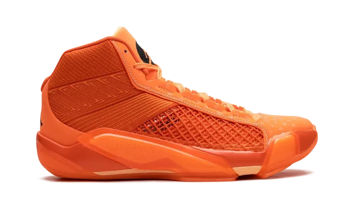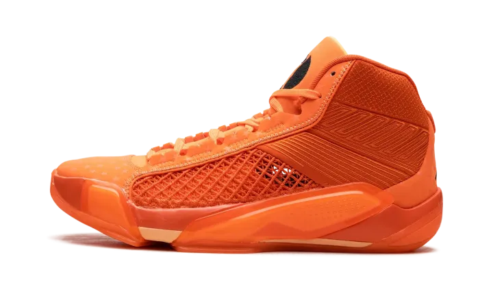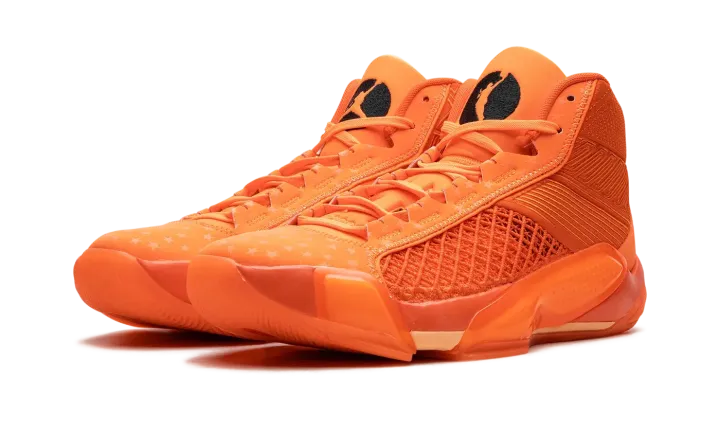 The Air Jordan 38 "Center Star" is a colorway of the performance basketball sneaker that honors Jordan Brand's WNBA athletes. Also inspired by the 2023 WNBA All-Star Game in Las Vegas, the "Center Star' Jordan 38 features a mostly monochromatic Brilliant Orange appearance with an intricate knit material on the side up to the collar. A star motif inspired by the WNBA All-Star Game is seen on the toe, insole, and heel counter. A Jumpman logo is seen on the tongue of the left shoe while a WNBA logo appears on the tongue of the right shoe. A Jumpman is located on the heel of both shoes.