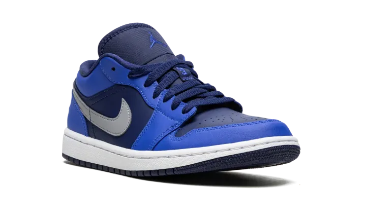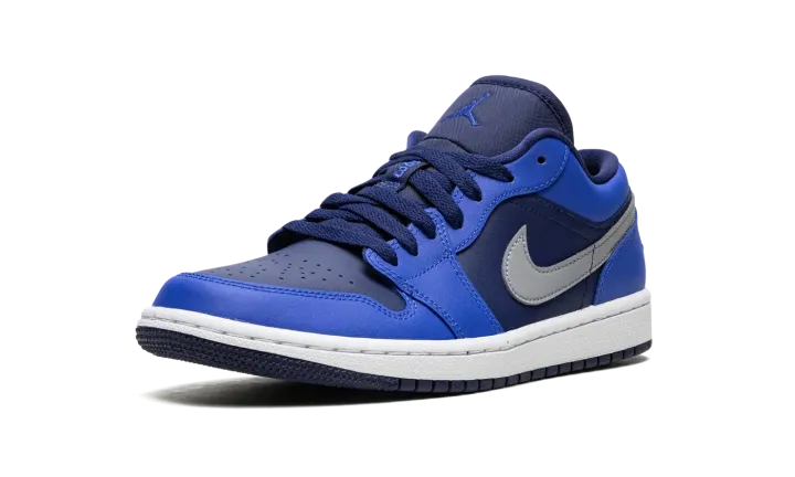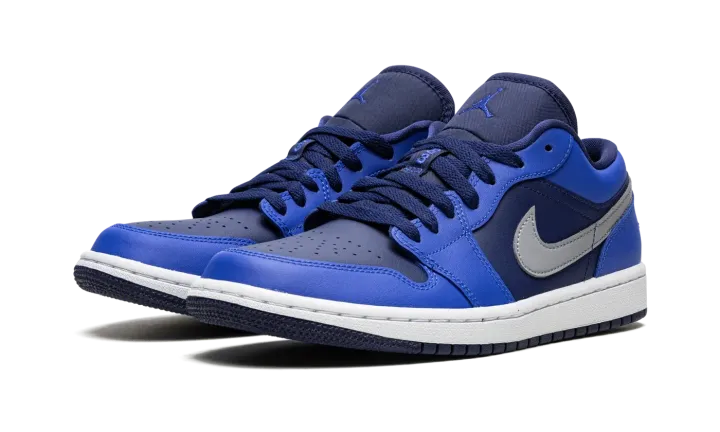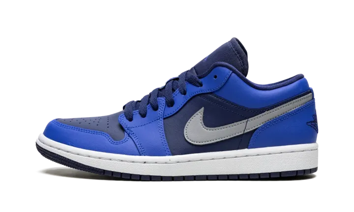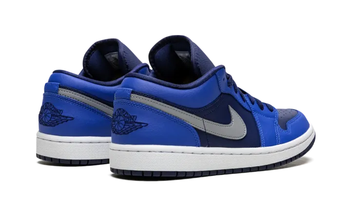 The Women's Air Jordan 1 Low "Game Royal/Blue Void" is a women's-exclusive colorway of the retro basketball shoe with different shades of blue accenting. Another popular release from Jordan Brand, the Women's Jordan 1 Low "Game Royal/Blue Void" features the toe, forefoot, eyelets, collar, and heel in Game Royal leather. The base of the upper is featured in a shade of blue called Blue Void. Elsewhere, a Stealth (grey) leather Swoosh is found on either side of the shoe. A navy "Wings" logo is embroidered onto the heel. The navy nylon tongue features a classic Jumpman logo in a slightly lighter shade of blue.