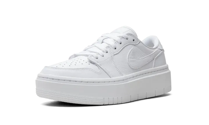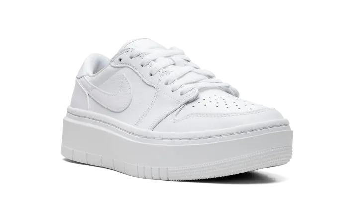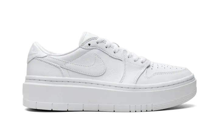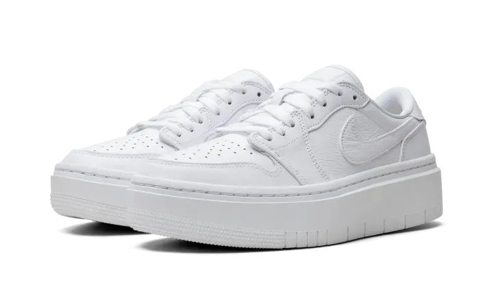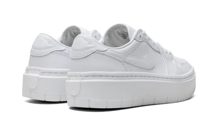 The Women's Air Jordan 1 Low Elevate "Triple White" is the women's-exclusive sneaker with a platform rubber sole in a monochromatic white colorway. The Jordan 1 Low Elevate provides the wearer with a boost in height with an exaggerated rubber sole. As for the rest of the shoe, the upper features a white leather construction that includes white leather overlays and Swoosh branding. A "bubble" "Wings" logo appears on the heel and white laces are layered over the tongue, completing the all-white-everything vibe. Release date: February 21, 2024