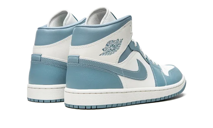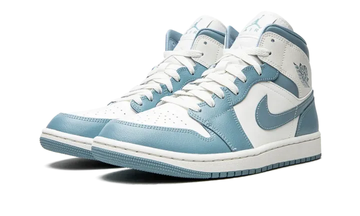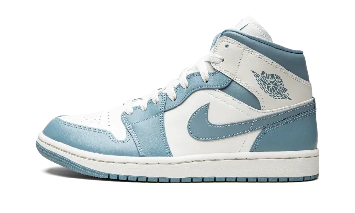The Women's Air Jordan 1 Mid "UNC" is a women's-exclusive makeup of the popular lifestyle shoe that shows appreciation for Michael Jordan's alma mater, the University of North Carolina. The "UNC" colorway was an original color concept of Jordan's retro basketball shoe back in 1985, and is an integral part of the Air Jordan line in the present day. Here, the "UNC" theme appears on the always covetable Jordan 1 Mid, as the shoe features the Tar Heels' light blue hue on the overlay panels and on the Swoosh and "Wings" branding. The perforated toe, mid-panel, and collar are designed in crisp white leather.