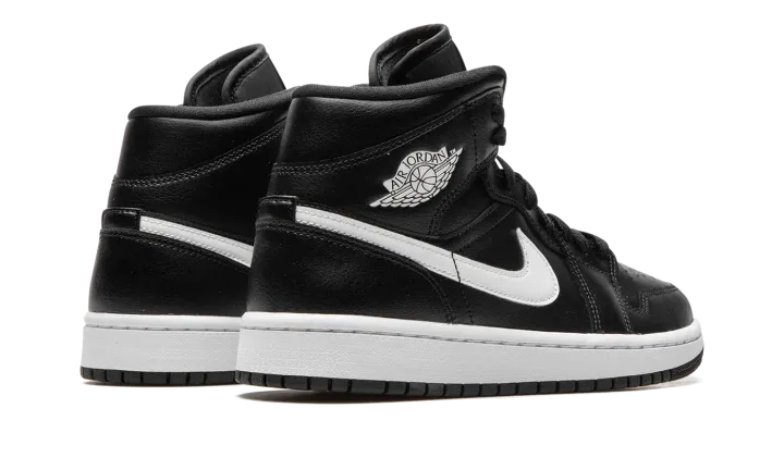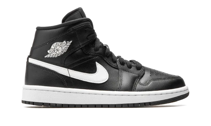The Women's Air Jordan 1 Mid "Black/White" is the women's sizing of the popular sneaker with an ultra versatile appearance. The Jordan 1 Mid is a timeless-looking shoe that can be worn by anyone, making it a staple in the modern sneaker scene. The "Black/White" colorway seen here features a mostly all-black leather construction with tonal leather overlays. A white leather Swoosh can be found on the sides. More white branding includes a "Wings" detail on the collar and a Jumpman logo on the tongue. Underfoot, a white rubber midsole and black rubber outsole complete the look. Release date: September 26, 2023