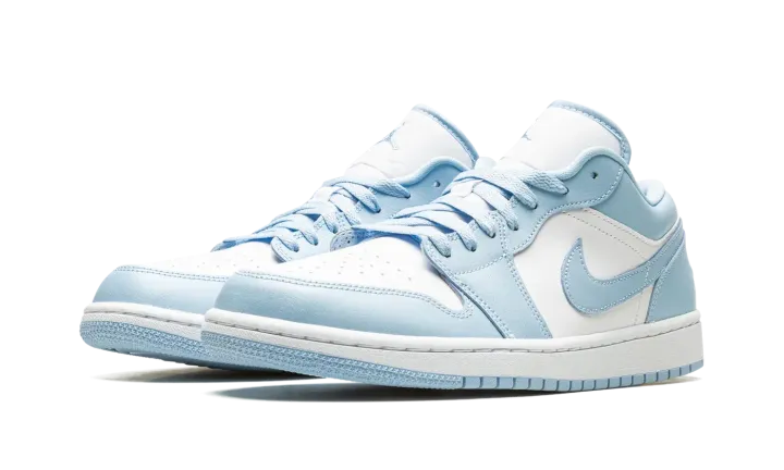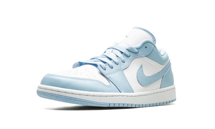 The Women's Air Jordan 1 Low "Ice Blue" is a women's-exclusive colorway of the vintage basketball shoe that shows love to the Jordan 1's original "UNC" style. While in no way associated with the University of North Carolina, the "Ice Blue" nonetheless honors Michael Jordan's alma mater and college basketball team by featuring its signature white-and-blue team uniform colors on its design. The upper is complete with a white leather base with Ice Blue leather overlays and Swoosh branding. A white "Wings" logo is found on the heel. On the tongue, an Ice Blue Jumpman gives the shoe a timeless look. Underfoot, a white midsole and blue rubber outsole round out the design.