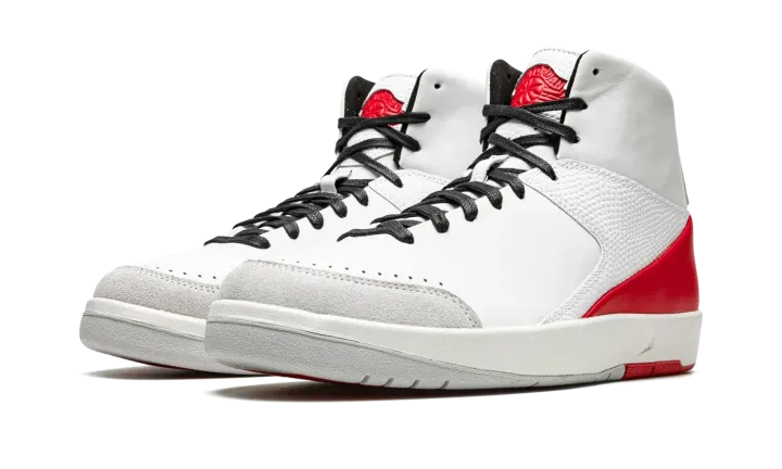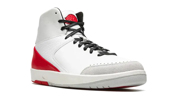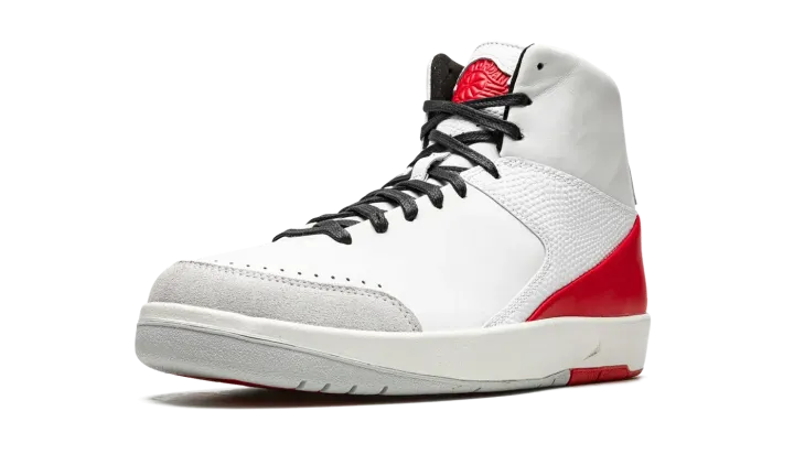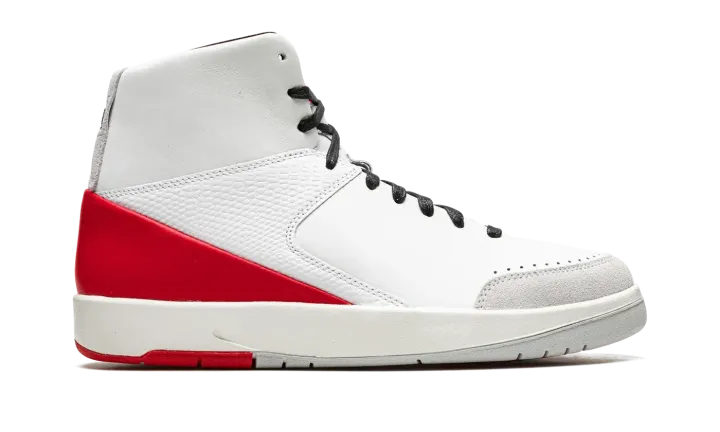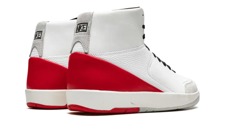 The Nina Chanel Abney x Women's Air Jordan 2 is a collaboration between the Chicago-born artist and Jordan Brand on a women's-exclusive colorway of Michael Jordan's second signature shoe. Leaning into the Air Jordan 2's original "Made in Italy" design, Nina's vision of the vintage basketball shoe stays true to its luxury design roots, as well as draws inspiration from its original "Chicago" colorway. The upper features smooth white leather on the toe and mid-panel. Faux reptilian white leather can be found on the overlays and tongue. The toe features a grey suede overlay, while a fiery red overlay is found on the heel. Classic "Nike" branding is located on the heel, and a red "Wings" logo appears on the tongue. Release date: July 8, 2022